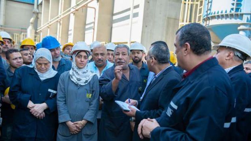 وزير الإنتاج الحربي يجري حديثا مع العاملين بشركة حلوان للمسبوكات