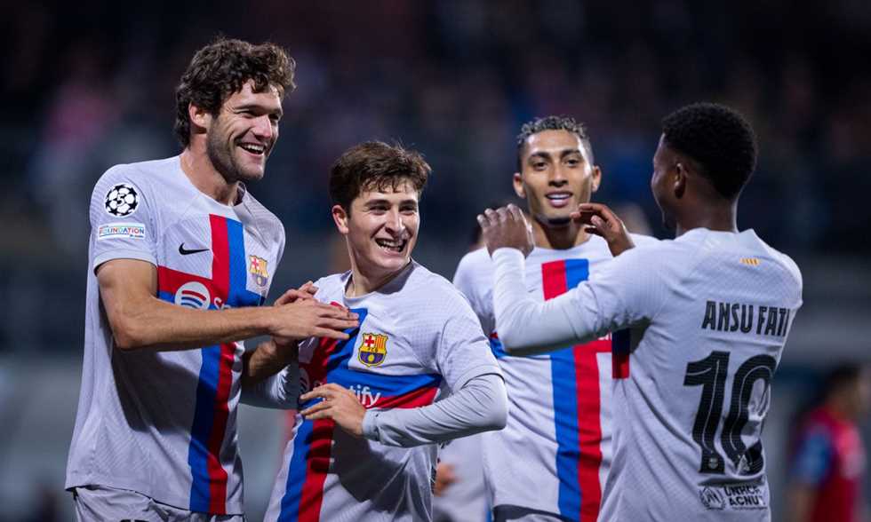 خط الهجوم: عثمان ديمبيلي – رافينيا – روبرت ليفاندوفسكي – فيران توريس – أنسو فاتي.