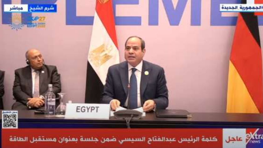وقال الرئيس خلال كلمته في الجلسة: «لعلكم تتفقون معي، أنّ مصطلح الهيدروجين الأخضر، ربما بات الأكثر شيوعًا واستخدامًا خلال السنوات القليلة الماضية، في سياق الحديث عن التحول نحو الطاقة المُتجددة، وتقليص الاعتماد على مصادر الطاقة التقليدية، لاسيما وأنّ أزمة الطاقة التي يمر بها العالم في الوقت الراهن، قد فرضت علينا جميعًا، تحديًا حقيقيًا، في تأمين إمدادات الطاقة التي تحتاجها دولنا دون الإخلال بواجباتنا تجاه مواجهة أزمة المناخ العالمية أو التراجع عن الأهداف التي توافقنا عليها والسياسات الوطنية التي نساهم من خلالها في هذا الجهد».