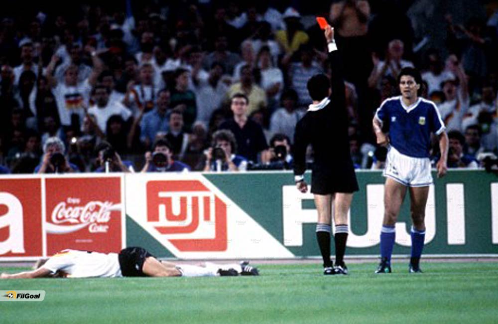 طرد مونزون وحصول كلينسمان على ضربة جزاء مشكوك في صحتها بنهائي مونديال 1990