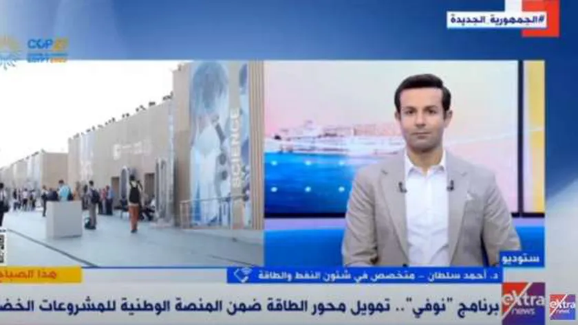 وأضاف «سلطان»، خلال مداخلة هاتفية لبرنامج «هذا الصباح» من تقديم باسم طبانة عبر فضائية «اكسترا نيوز»، أنّ مصر ستعمل من خلال منصة «نوفي» في الترويج للمشروعات الخضراء التنموية في قطاعات المياه والغذاء والطاقة، مشيرًا إلى أنّ تلك الخطوة قوية نحو تنفيذ الاستراتيجة الوطنية للتغيرات المناخية 2035، كما أنّها ستعمل على حشد جهود المجتمع الدولي؛ لدعم التحول للأخضر بمصر.