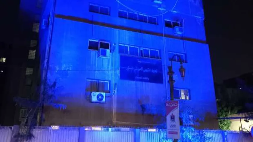 وزارة الصحة تضيء المعهد القومي للسكر باللون الأزرق