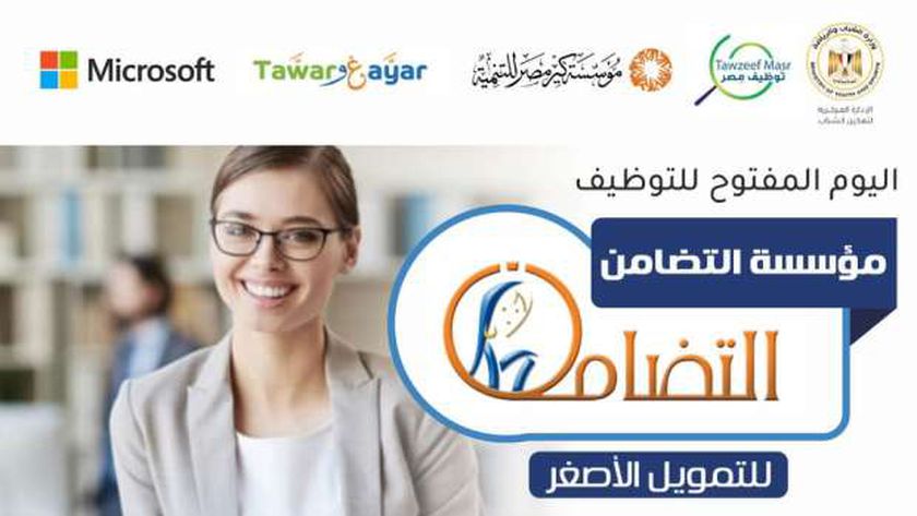 كما تعلن وزارة الشباب والرياضة من خلال الإدارة المركزية لتمكين الشباب (الإدارة العامة للمبادرات الشبابية) بالتعاون مع شركة مايكروسوفت ومؤسسة كير مصر للتنمية من خلال مبادرة توظيف مصر عن اليوم التوظيفي المفتوح لمؤسسة التضامن للتمويل الأصغر اليوم الأربعاء من الساعة 10 ص إلى الساعة 3 م، على الوظائف التالية :