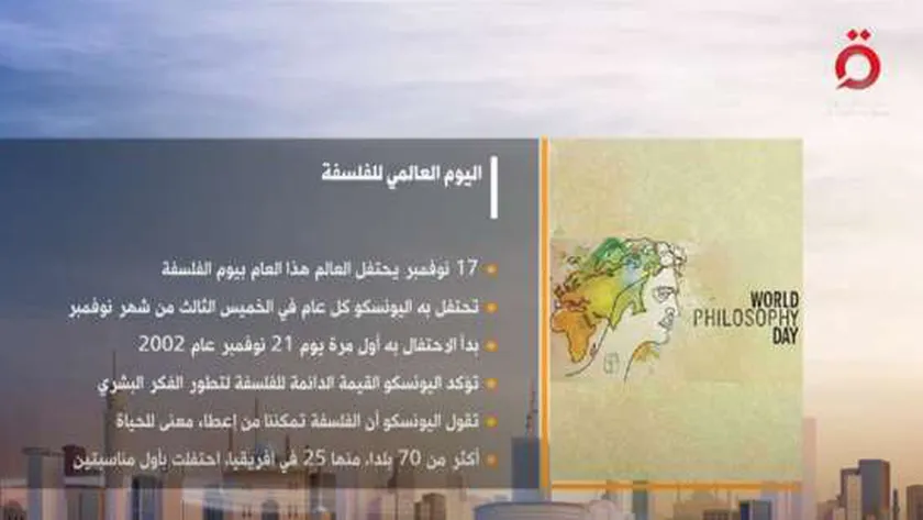 وذكر التقرير، أنّ العالم يحتفل في يوم 17 نوفمبر من كل عام بيوم الفلسفة، وتحتفل به اليونسكو كل عام في الخميس الثالث من شهر نوفمبر، وبدأ الاحتفال به أول مرة يوم 21 نوفمبر عام 2002، وذلك تأكيدًا من اليونسكو على القيمة الدائمة والمستدامة للفلسفة لتطور الفكر البشري.