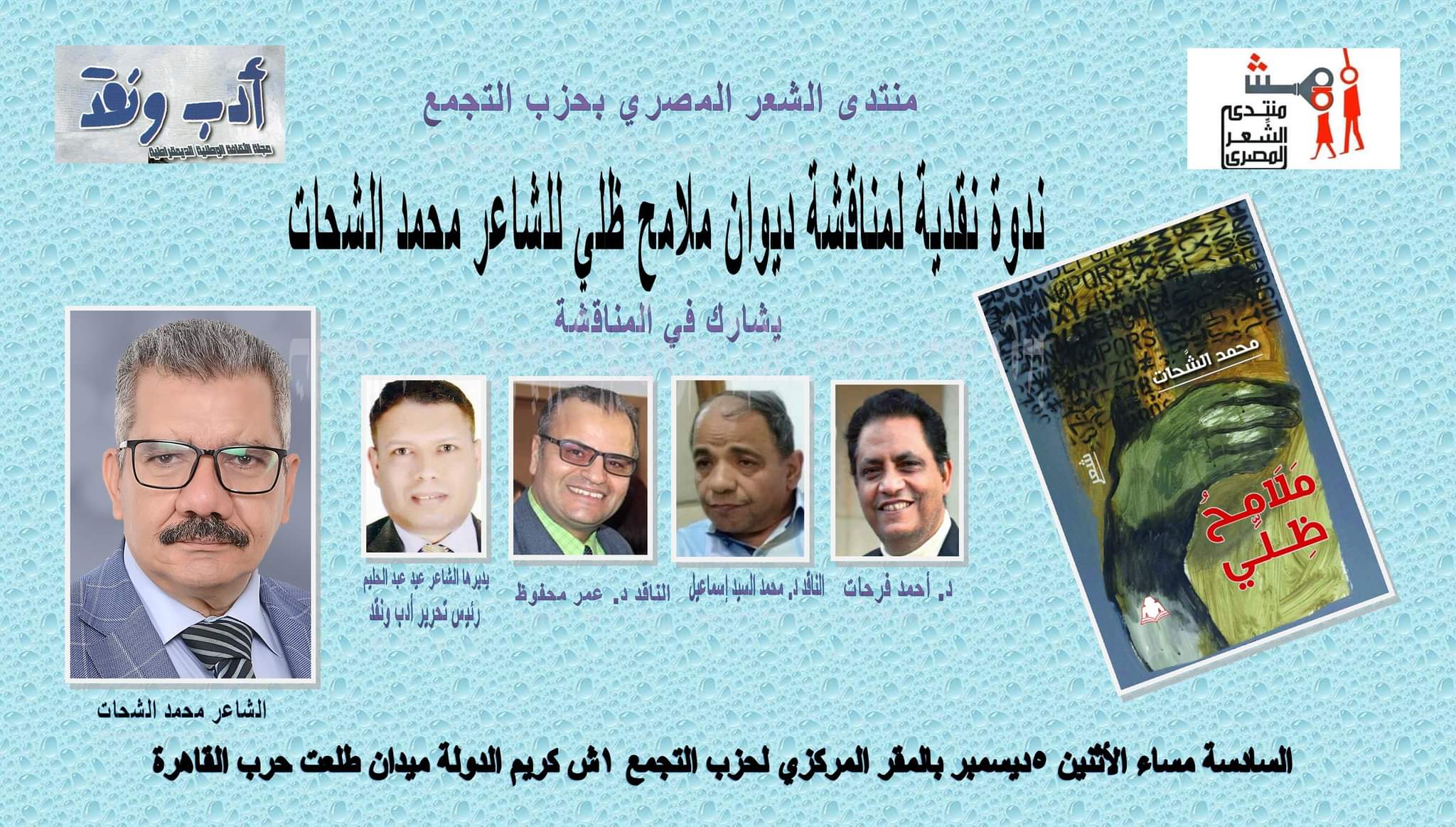 يقيم منتدى الشعر المصري بحزب التجمع ندوة لمناقشة ديوان ملامح ظلي للشاعر محمد الشحات الصادر مؤخرا عن الهيئة المصرية العامة للكتاب ، يشارك في المناقشة الناقد د. احمد فرحات والشاعر الناقد د. محمد السيد إسماعيل ، والناقد د. عمر محفوظ الاستاذ بكلية دار العلوم ويديرها الشاعر عيد عبد الحليم.