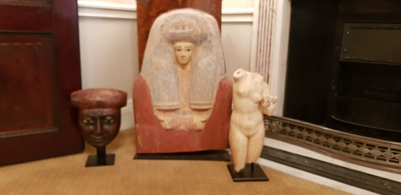 – 3 قطع أثرية تم استردادهم من لندن، عبارة عن تمثال مصنوع من الألباستر – فاقد الرأس والقدمين يرجع إلى العصر اليوناني الروماني، والقطعة الثانية هي جزء من تابوت خشبي؛ ربما يرجع إلى العصر المتأخر، أما القطعة الأخيرة فهي جزء من تابوت.