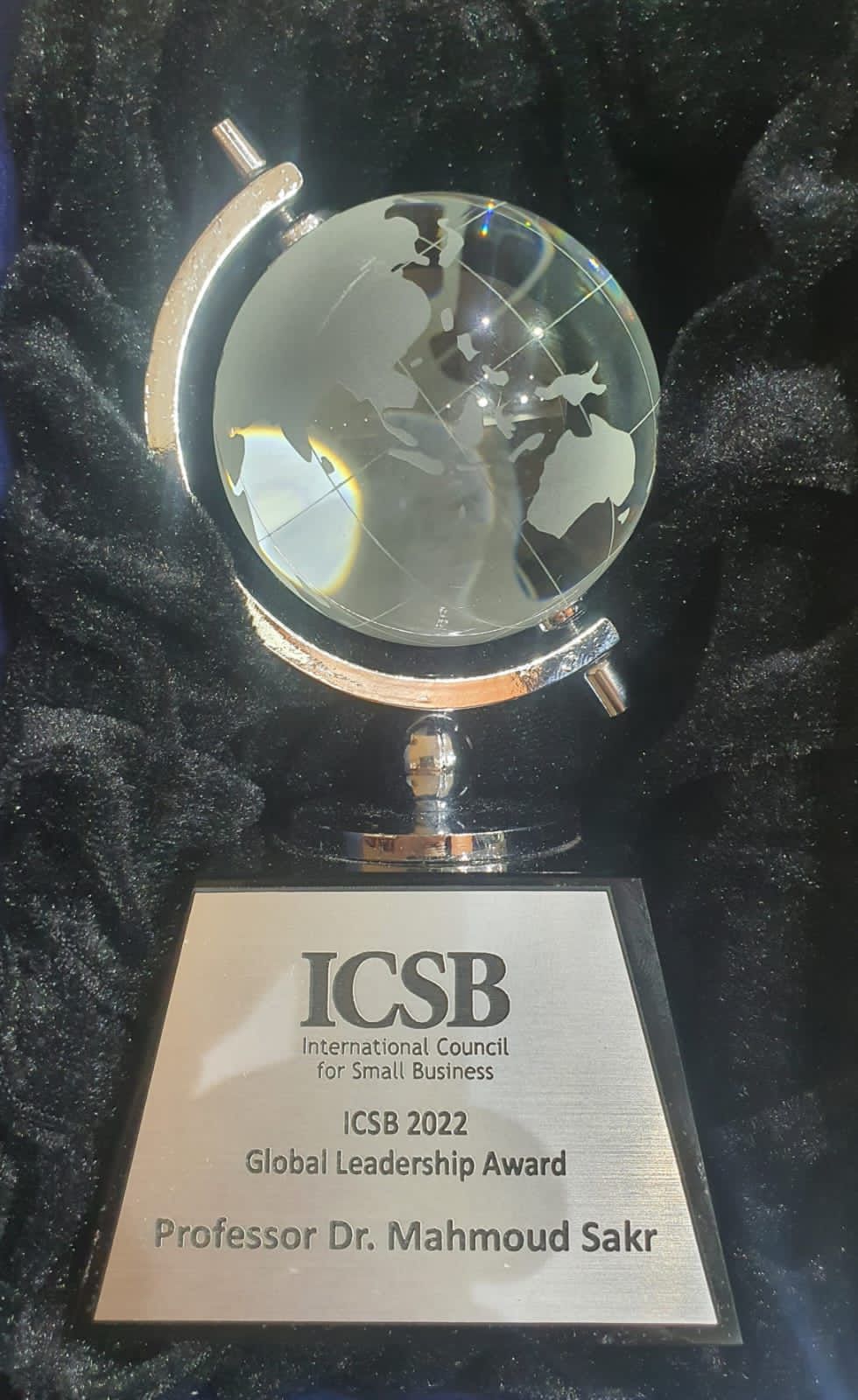 تسلم الدكتور محمود صقر، رئيس أكاديمية البحث العلمي والتكنولوجيا صباح اليوم الجائزة الرئاسية من المجلس الدولي للمشروعات الصغيرة، وهي جائزة تُمنح سنويًا للشخصيات الأكثر تأثيرًا على مستوى العالم في مجال تنمية الصناعات الصغيرة والمتوسطة وريادة الأعمال، وقد سلمه الجائزة الدكتور وينسلو سارجنت، رئيس مجلس إدارة المجلس الدولي للمشروعات الصغيرة (ICSB).