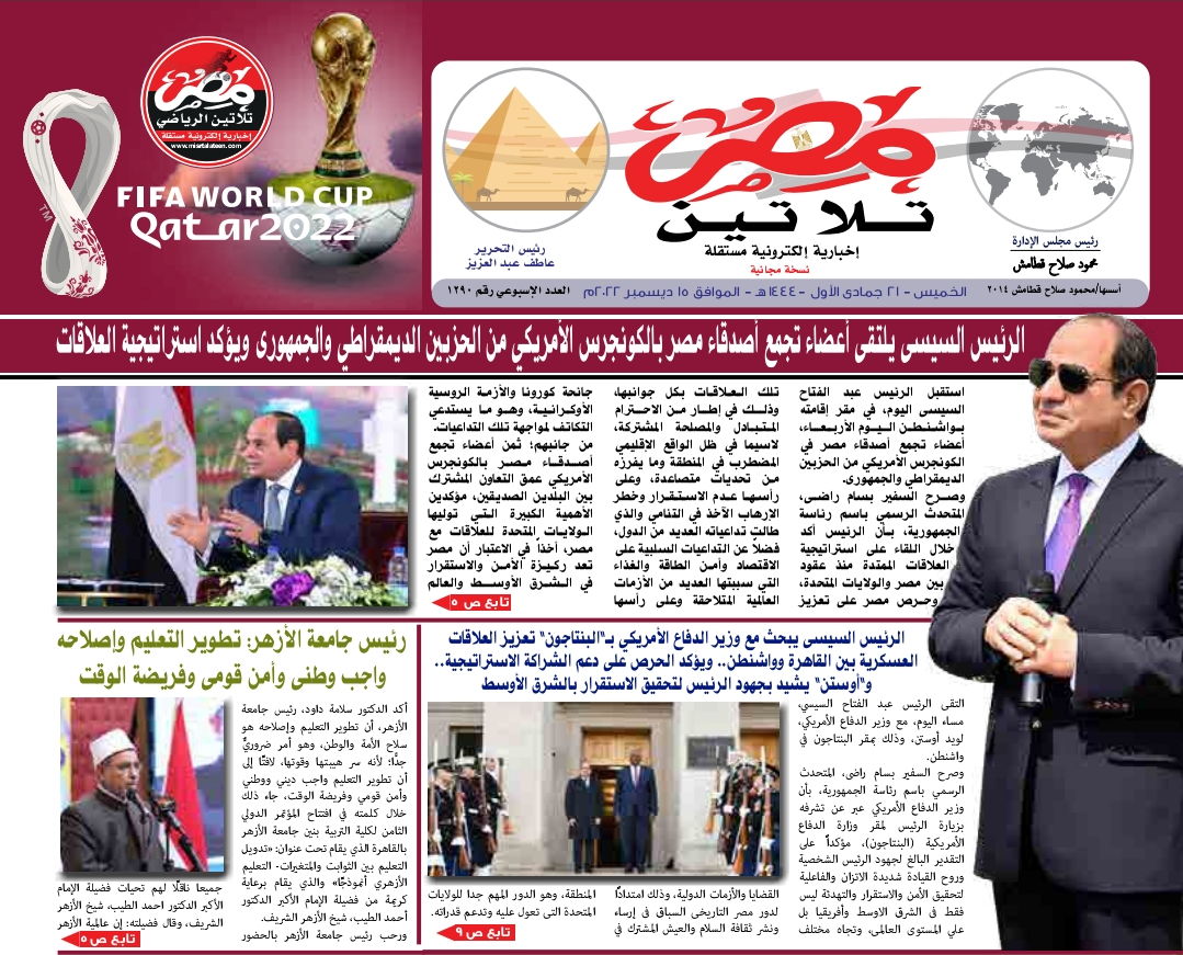 تقدم صحيفة مصر تلاتين عدد اسبوعي يصدر عن الصحيفة كل يوم خميس نستعرض فيه ونوثق أهم أحداث الاسبوع على المستوى المحلي والعالمي .