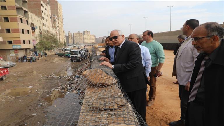 محافظ الجيزة يتفقد أعمال إصلاح كسور بماسورة مياه بالطالبية