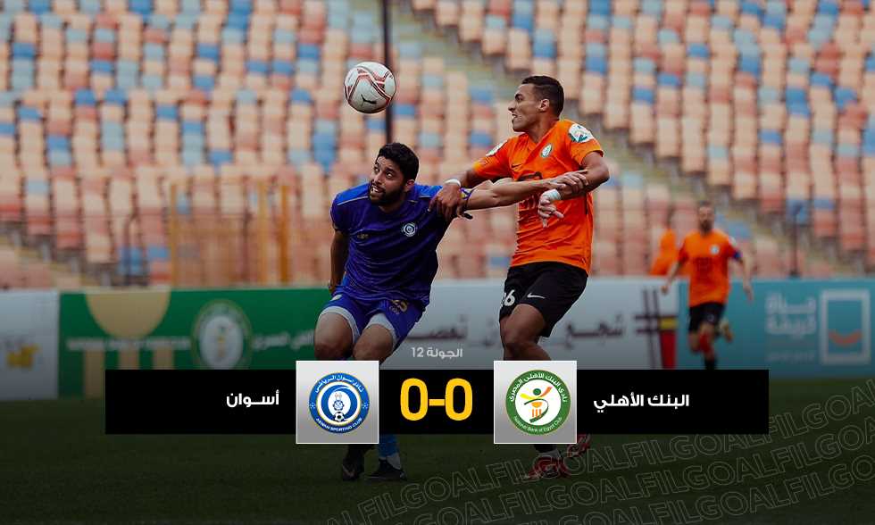 تعادل البنك الأهلي أمام ضيفه أسوان دون أهداف في استاد القاهرة الدولي، بالجولة 12 للدوري المصري.