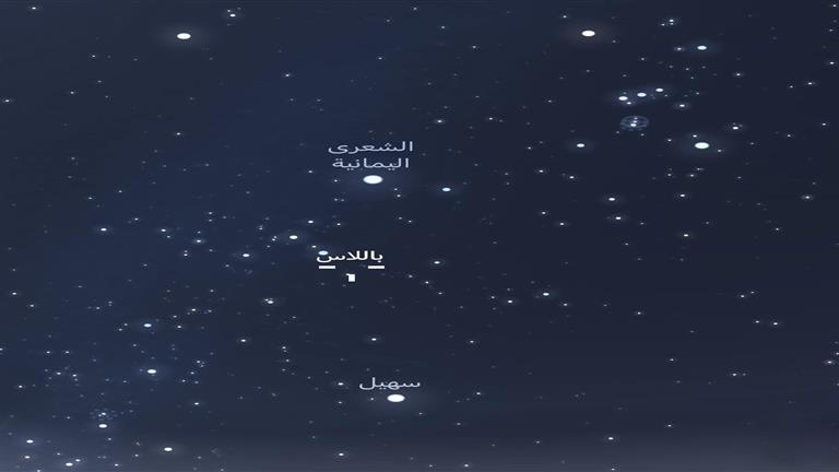 وأشارت الجمعية الفكلية، إلى أن الكويكب بالاس سيكون هذه الليلة في جنوب نجوم الكلب الأكبر، على بعد عدة أصابع من أسفل اليمين (أو ثلاث درجات إلى الجنوب الغربي السماوي) للنجم الساطع العذاري (Adhara) وليس بعيدا عن النجم متوسط اللمعان كابا كانيس “ماجوريس”.