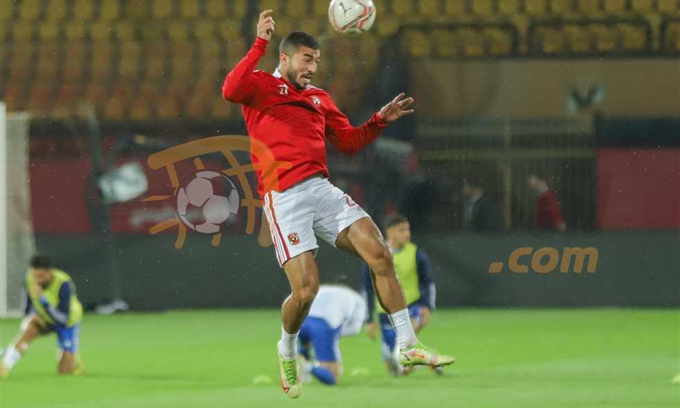 أدى محمد عبد المنعم مدافع فريق الأهلي تدريبات بدنية على هامش المران الجماعي الذي أقيم على ملعب التتش بمقر النادي بالجزيرة.