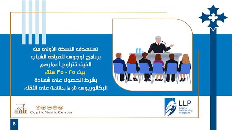 ويمتد البرنامج لمدة 4 أشهر، ويتم إطلاقه في ملتقى مركز لوجوس البابوي في دير الأنبا بيشوي بوادي النطرون، يليه العمل على مشروعات عملية لخدمة احتياجات الكنيسة القبطية مع المتابعة المستمرة والمقابلات الدورية.
