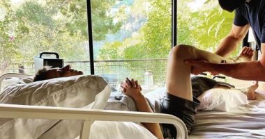 ونشر صورة يظهر فيها مستلقيًا على سرير طبي ويداه على صدره، بينما كان رجل يرفع ساقه المثنية عند الركبة، وكتب رينر: “التدريبات الصباحية والقرارات كلها تغيرت خلال رأس السنة غير العادي هذا”.