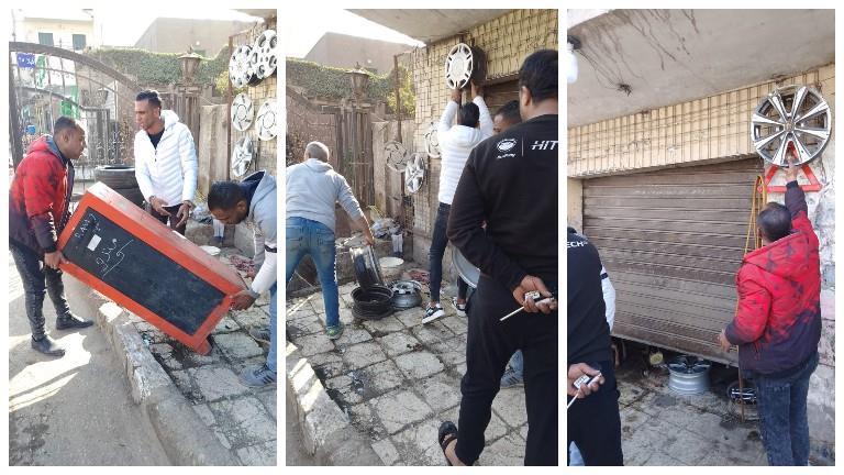 وتوجهت حملة من حي الهرم لرفع الإشغالات والسيارات المتهالكة وإزالة الحواجز من أمام العقارات بشارع العدوي وغلق وتشميع ورشة كاوتش لإعاقتها الحركة المرورية بشارع أبوالهول السياحي.