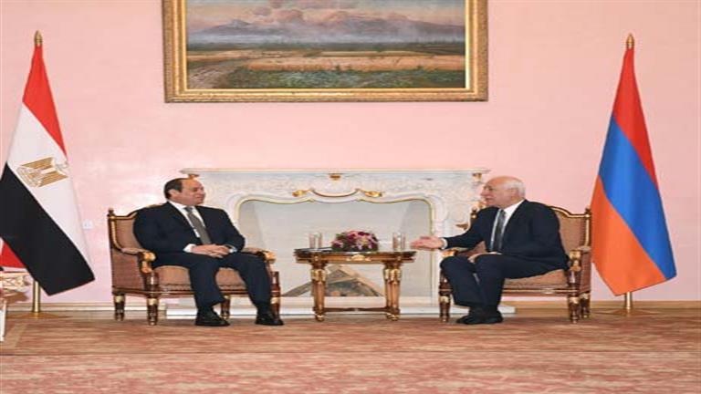 وقال السفير بسام راضي، المتحدث باسم رئاسة الجمهورية، إن الرئيس أجرى مباحثات مغلقة مع الرئيس الأرميني تبعتها جلسة مباحثات موسعة ضمت وفدي البلدين، حيث رحب الرئيس الأرميني في مستهلها بالزيارة التاريخية للرئيس، معرباً عن تقدير أرمينيا لمصر على المستويين الرسمي والشعبي، واعتزازها بالروابط الممتدة التي تجمع بين البلدين الصديقين.