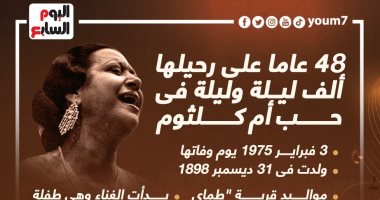“ألف ليلة وليلة” فى حب كوكب الشرق أم كلثوم.. إنفوجراف