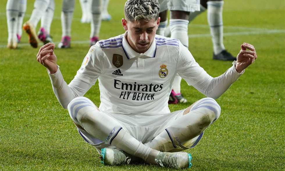 فيدي فالفيردي يحتفل بهدف ريال مدريد أمام أوساسونا