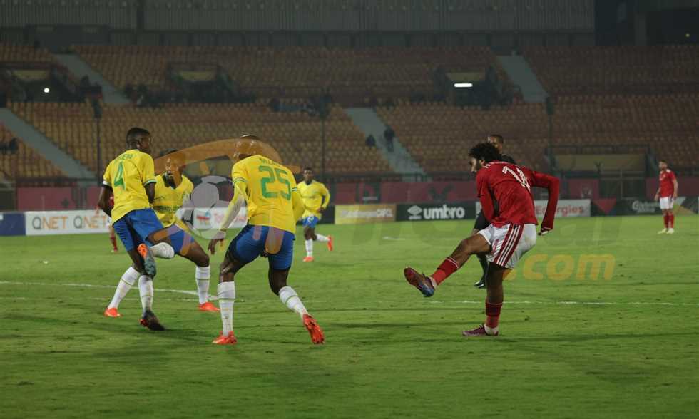 أهدر أحمد عبد القادر فرصة التسجيل للأهلي بغرابة في الدقيقة 3 بعدما أخطأ دفاع صنداونز وأعاد له الكرة ليسدد ويبعدها الحارس إلى ركنية.