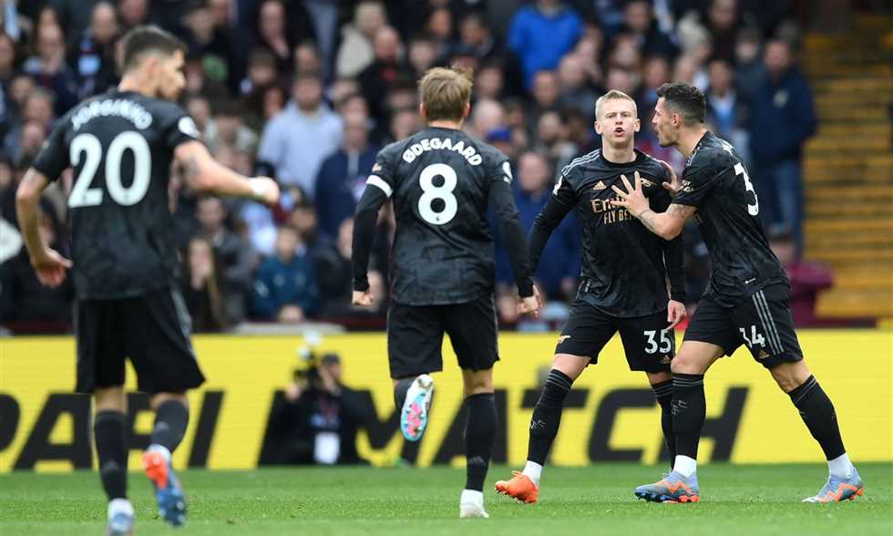لاعبو أرسنال يحتفلون بهدف أوليكساندر زينشينكو أمام أستون فيلا
