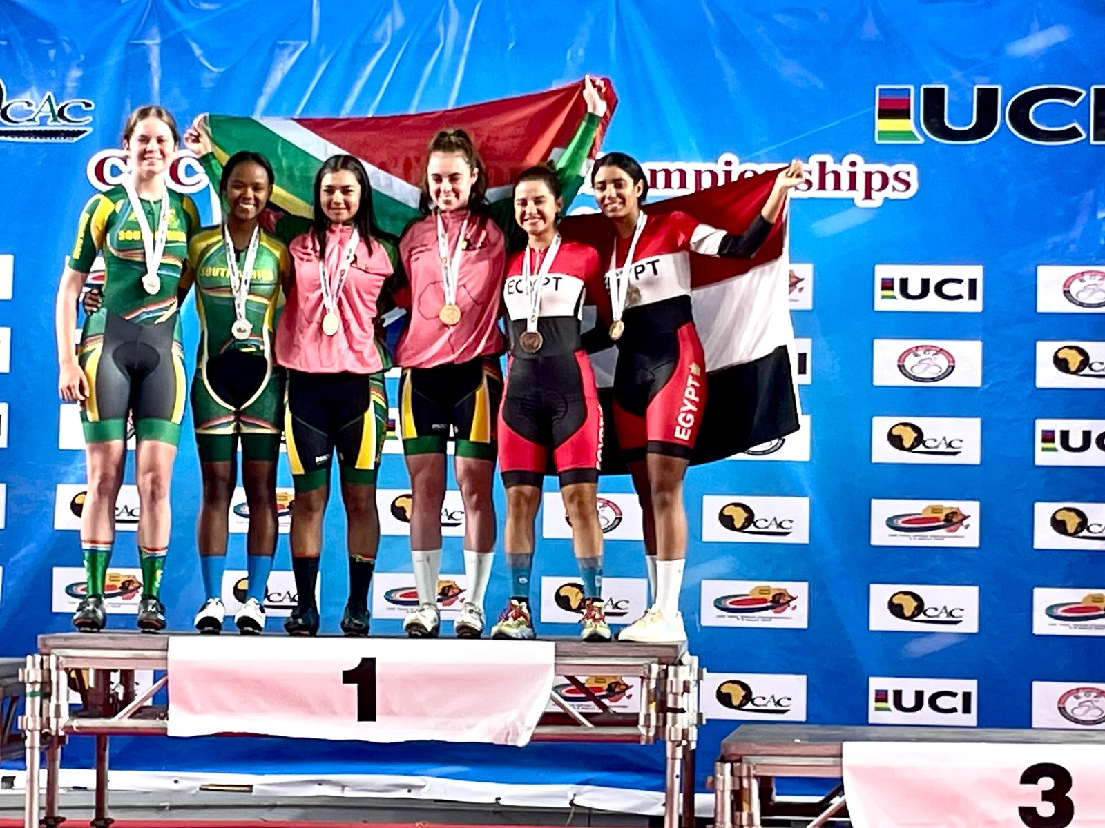 وفي سباق ماديسون لفئة نخبة السيدات فاز منتخب جنوب إفريقيا بالميداليتين الذهبية والفضية للسباق.