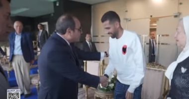 الرئيس السيسي يرحب بمؤمن زكريا خلال المباراة النهائية لبرنامج كابيتانو مصر