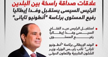 الرئيس السيسى يستقبل وفدا إيطاليا رفيع المستوى برئاسة أنطونيو تايانى.. إنفوجراف
