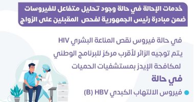 كشفت وزارة الصحة والسكان عن خدمات الإحالة فى حالة وجود تحليل متفاعل للفيروسات ضمن مبادرة فحص المقبلين على الزواج.