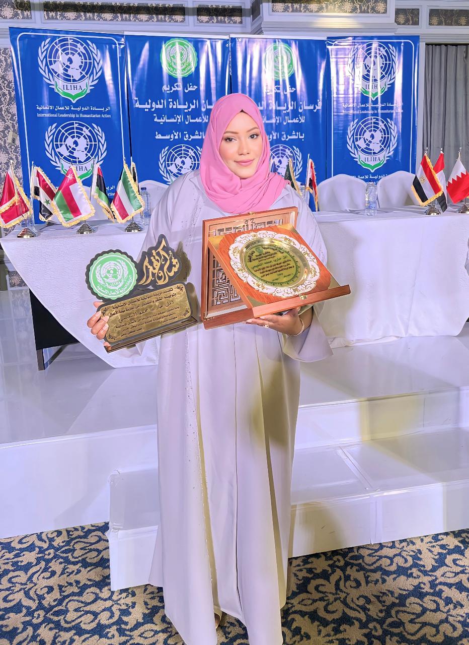 منح الاماراتيه امل النعيمي درع فرسان الرياده الدوليه للأعمال الإنسانية بالشرق الأوسط