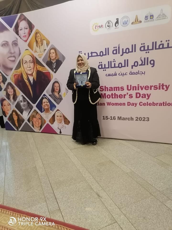 الحمد لله الذي بنعمته تتم الصالحات وبتوفيقة وانصافه وجبره يكون كل الخير مساء هذا اليوم في رحاب جامعة عين شمس وفي قاعة المؤتمرات الكبري بالجامعة تحت رعاية وحضور العالم الكبير الاستاذ الدكتور محمود المتيني رئيس الجامعة والسادة النواب والوكلاء وعمداء وعميدات كليات الجامعة اسعدني اليوم وشرفت باختياري من قبل جامعة عين شمس للنكريم ضمن نخبة من القيادات النسائية المكرمات بمناسبة يوم المرأة المصرية