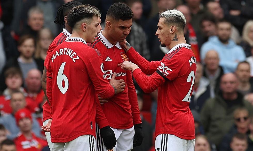 لاعبو مانشستر يونايتد مع كاسيميرو بعد البطاقة الحمراء
