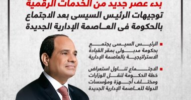 توجيهات الرئيس السيسى بعد الاجتماع بالحكومة فى العاصمة الإدارية.. إنفوجراف