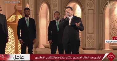 هشام عباس يقدم “أسماء الله الحسنى” خلال افتتاح مركز مصر الثقافى الإسلامى