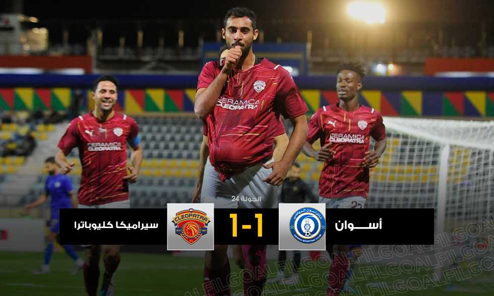 وتعادل أسوان مع سيراميكا كليوباترا بهدف لكل فريق ضمن الجولة 24 من الدوري.