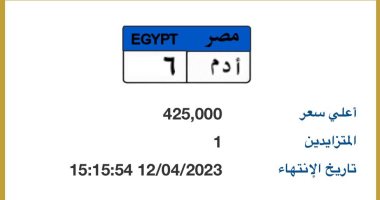 أغلى 3 لوحات معدنية مميزة بالمزاد الإلكترونى.. “أ د م 6” بـ425 ألف جنيه