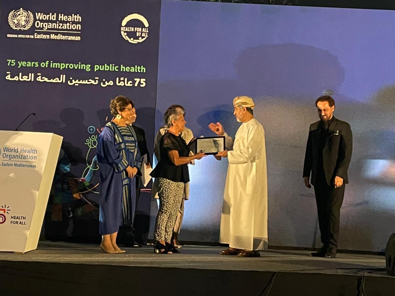 وقام الدكتور أحمد المنظرى المدير الإقليمى لشرق المتوسط، بمنظمة الصحة العالمية بتكريم السباحه المصريه نجوى غراب احد أنصار منظمه الصحه العالميه