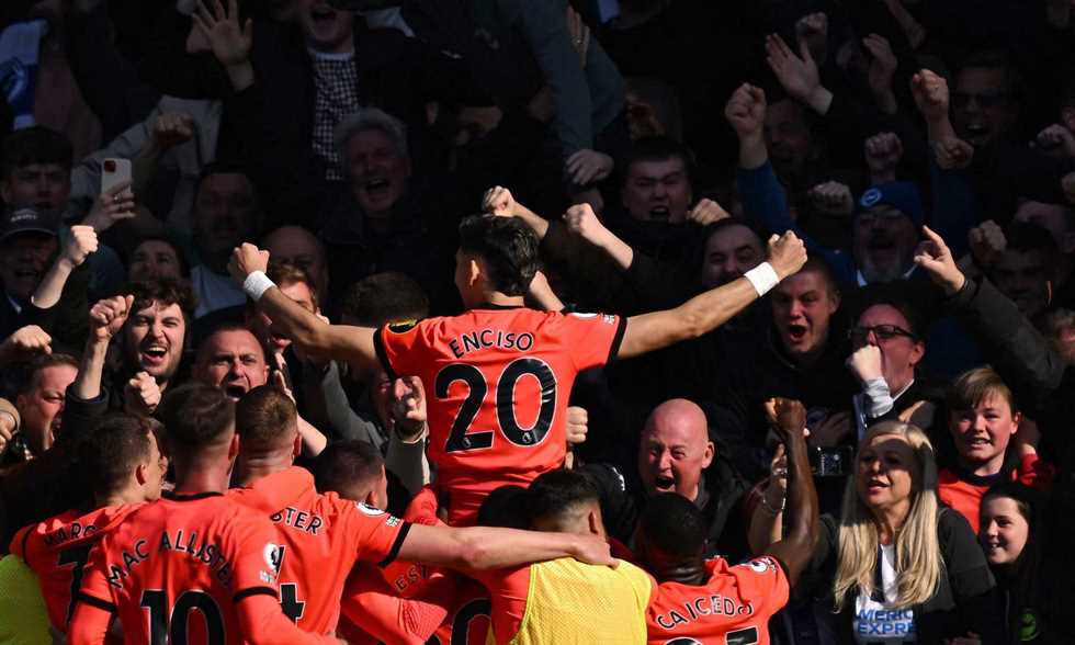 لاعبو برايتون يحتفلون بهدف إنسيسو أمام تشيلسي