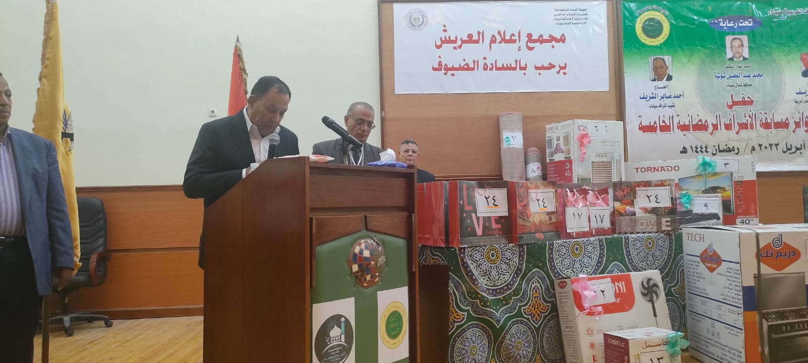 أقيمت الاحتفالية بمركز اعلام العريش بحضور اللواء د.محمد عبد الفضيل شوشة محافظ شمال سيناء وأحمد صابر الشريف نقيب الأشراف بشمال سيناء والشيخ محمود مرزوق مدير عام أوقاف شمال سيناء والشيخ عبد الكريم الشريف شيخ عائلة الأشراف والنائب فايز ابراهيم حرب عضو مجلس النواب .. الى جانب ابراهيم وهبى الشريف وجميل وهبى الشريف الرعاة الداعمون للمسابقة ومقدمى الجوائز .