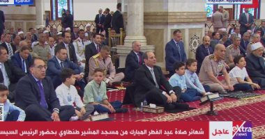 بدأت منذ قليل صلاة عيد الفطر، بمسجد المشير طنطاوى، بحضور الرئيس عبد الفتاح السيسى.
