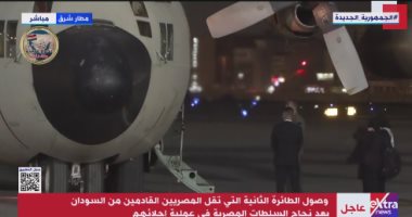 أذاعت قناة اكسترا نيوز، خبرا عاجلا، عن وصول الطائرة الثانية، التى تحمل على متنها عددا من الجالية المصرية العائدة من السودان، بعد نجاح السلطات المصرية في عملية إجلائهم.