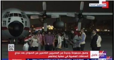 استقبلت قاعدة شرق القاهرة العسكرية الجوية، طائرة جديدة تقل مصريين قادمين من السودان، حيث تم استقبالهم بالأعلام المصرية والورود بعد نجاح السلطات المصرية فى إجلائهم.