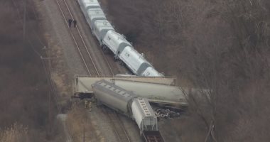 وأظهرت صور انتشرت على مواقع التواصل الاجتماعي عدة عربات من قطار الشحن ملقاة على جانبها، مع تصاعد دخان رمادي قاتم في الهواء، في موقع خروج القطار عن القضبان.