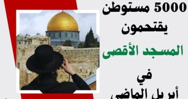 مرصد الأزهر: أكثر من خمسة آلاف مستوطن اقتحموا الأقصى فى شهر أبريل