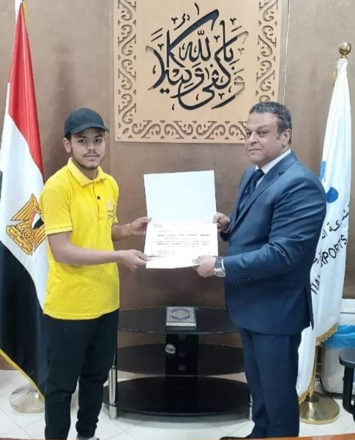 تكريم عامل بمطار سوهاج عثر على عملات تعادل ٣ مليون جنيه بدورة المياه تركها راكب بعد فشله فى تهريبها للخارج