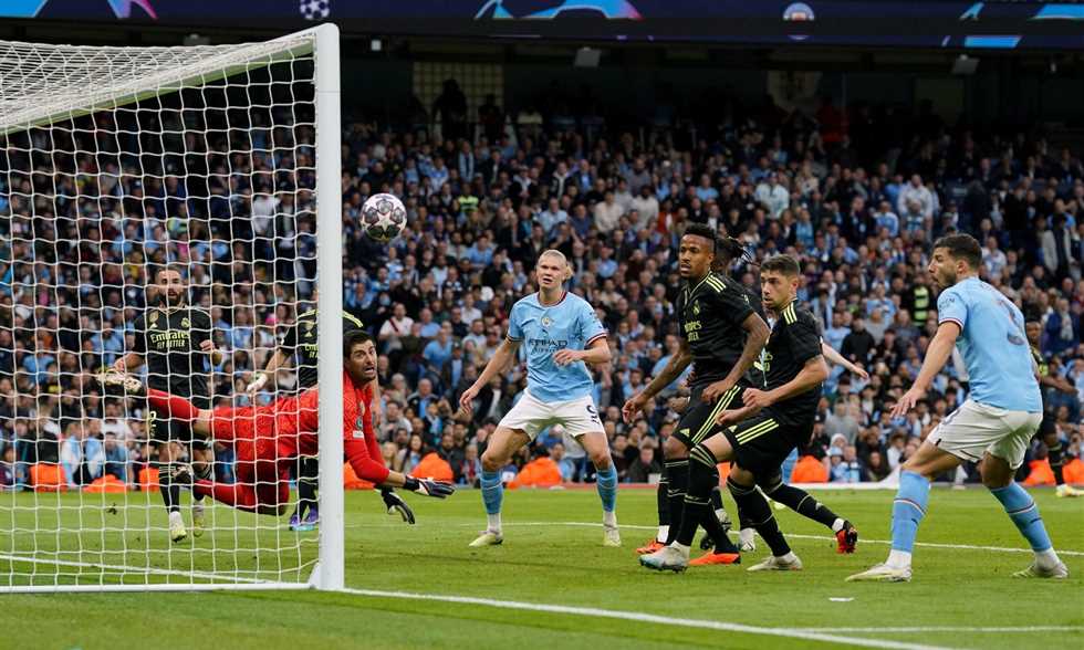 تصدي تيبو كورتوا لرأسية هالاند – مانشستر سيتي وريال مدريد