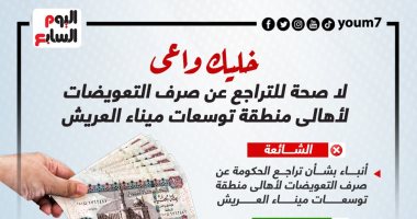 خليك واعى.. لا صحة للتراجع عن صرف التعويضات لأهالى منطقة توسعات ميناء العريش (إنفوجراف)