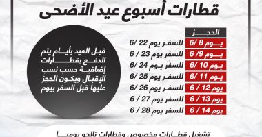 تفاصيل حجز قطارات أسبوع عيد الأضحى.. إنفوجراف