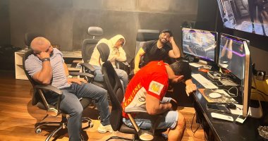 تامر حسنى فى الاستوديو من أجل مونتاج “تاج”.. وفريق العمل نيام