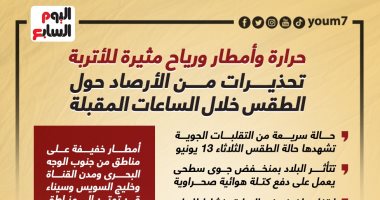 تحذيرات من الأرصاد حول الطقس خلال الساعات المقبلة.. إنفوجراف