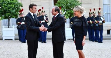 استقبال ماكرون للرئيس السيسي بقصر الإليزيه لحضور مأدبة عشاء مع القادة المشاركين بقمة الميثاق التمويلى